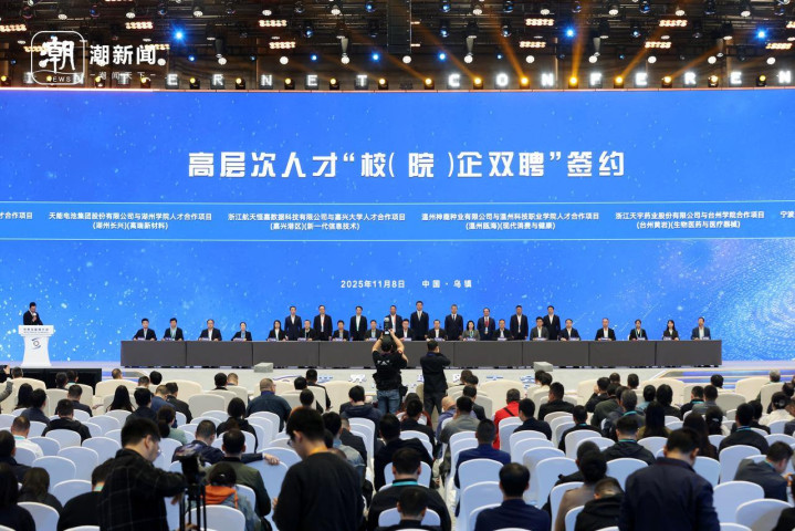 11月8日,2025年世界互联网大会乌镇峰会数字经济产业合作大会在浙江乌镇举行。大会以“数智跃迁·AI驱动数字经济新生态”为主题,全球人工智能领域知名企业领军人物及权威专家展开深度研讨交流,灵伴科技、程天科技等企业家带来最新产品。同时,现场设置数字经济领域合作项目签约、高层次人才“校(院)企双聘”签约环节,为产业高质量发展夯实人才根基。